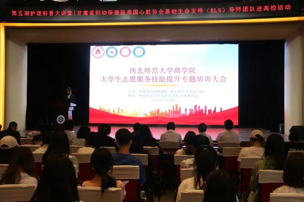 活动伊始,商学院党委副书记杨国科代表学院对甘肃省妇幼保健院专家团队表示了欢迎。他指出:习近平总书记高度重视大学生社会实践工作,甘肃省妇幼保健院莅临学院开展主题培训活动,不仅能够为学院广大学生普及应急救护的相关知识和技能,还将为学院志愿服务和协同育人工作注入强劲动力,为学院大学生社会实践活动的开展提供新思路、新方案、新智慧。