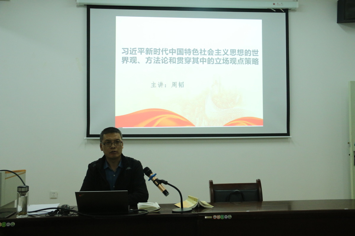 接着,周韬副院长系统地梳理了习近平新时代中国特色社会主义思想的世界观、方法论,指出大家在科研和学术工作中要站稳立场,用科学的世界观和方法论指引科研工作,理论与实践相结合,坚持自信自立,坚持守正创新,坚持问题导向,坚持系统观念,把论文写在中国大地上,为科技自强自立贡献自己力量。