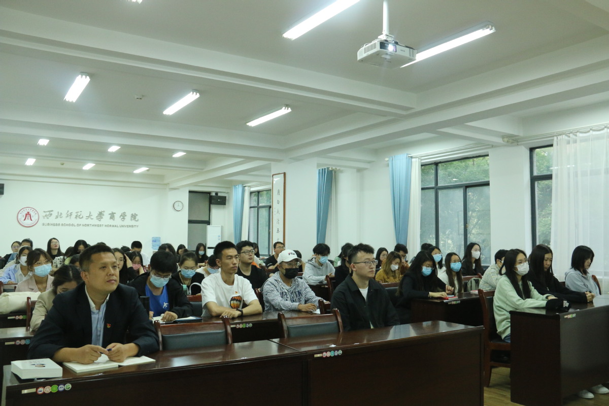 5月24日,商学院副院长周韬面向全院研究生党员,开展题为“习近平新时代中国特色社会主义思想的世界观、方法论和贯穿其中的立场观点”的主题教育专项党课。商学院研究生第一党支部、第二党支部全体党员和入党积极分子共计80余人参加此次党课。